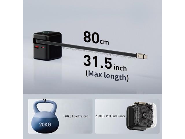• New Design USB C Charger Block with Retractable Type C Charging Cable: Comes with a built-in convenient 31.5 inches retractable fast-charging cable, ensuring you always have the perfect length and neatly retracts for easy storage and portability.
