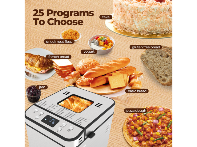 • 25 Programs & Family-Size Capacity: With 25 automatic functions - including Gluten-Free, Cake, Jam and more - and 3 crust colors, you can bake the perfect loaf every time. The 2LB capacity comfortably serves 5 - 6 people.