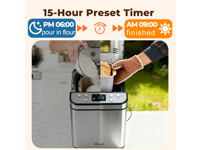 • Flexible Timing & Power Recovery: Plan fresh bread around your schedule with a 15-hour delay start, 1-hour keep-warm, and 40-minute power recovery after interruption.