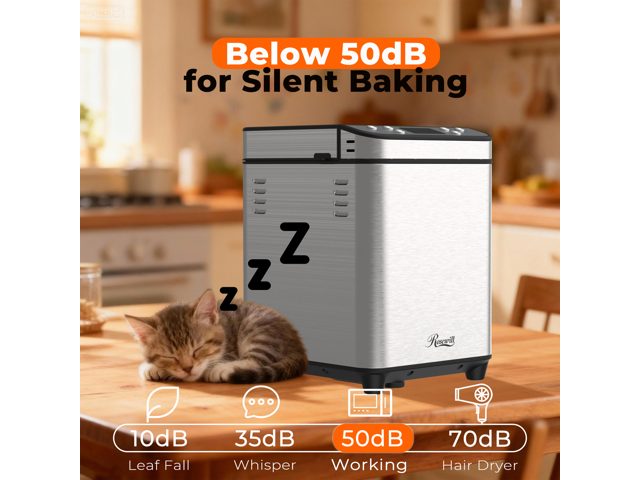 Rosewill 25-in-1 Automatic Bread Maker Machine with 3 Loaf Size up to 2LB, 700W High Power Dual Heater Bread Maker with BPA-free Nonstick Coating Pan, Max 15 Hours Delay Timer, Low Noise - Silver