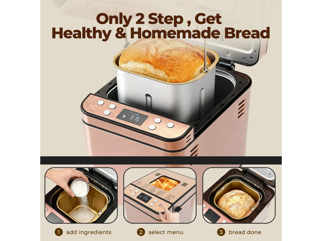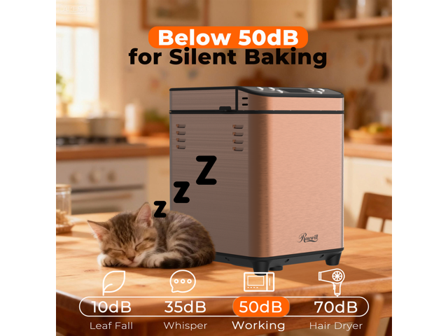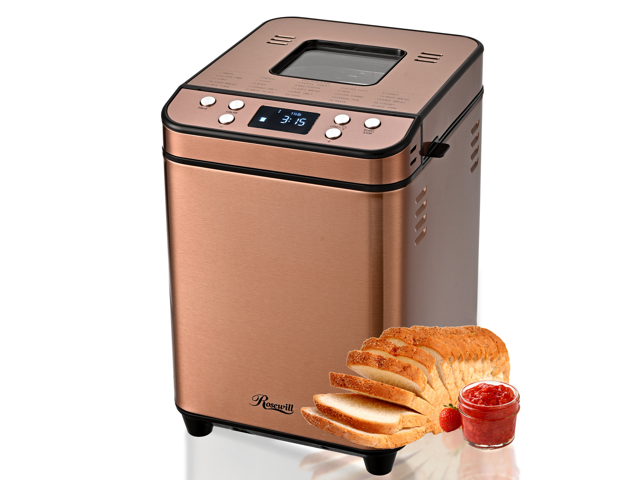 Rosewill 25-in-1 Automatic Bread Maker Machine with 3 Loaf Size up to 2LB, 700W High Power Dual Heater Bread Maker with BPA-free Nonstick Coating Pan, Max 15 Hours Delay Timer, Low Noise - Cinnamon