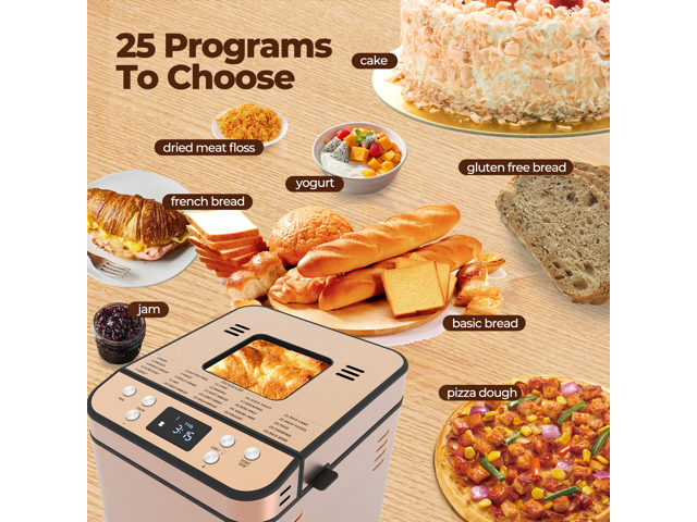 • 25 Programs & Family-Size Capacity: With 25 automatic functions - including Gluten-Free, Cake, Jam and more - and 3 crust colors, you can bake the perfect loaf every time. The 2LB capacity comfortably serves 5 - 6 people.