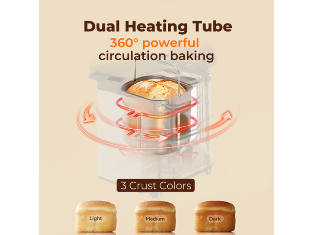 • 360° Dual Heating for Even Baking: Top and bottom 700W heaters provide fast, surround baking that intelligently adjusts for fluffy and evenly baked bread in less time.