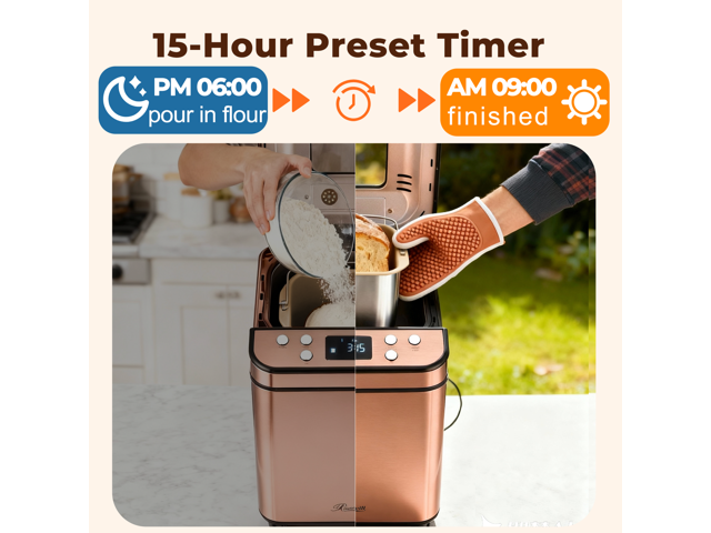• Flexible Timing & Power Recovery: Plan fresh bread around your schedule with a 15-hour delay start, 1-hour keep-warm, and 40-minute power recovery after interruption.