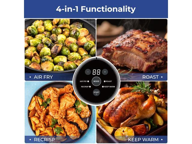 • 4-in-1 Multifunction: Featuring four preset modes - Air Fry, Roast, Recrisp, Keep Warm - each with optimized time and temperature. Just press to start. The 1200W heater ensures fast, healthier cooking.