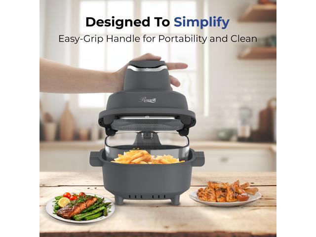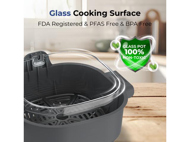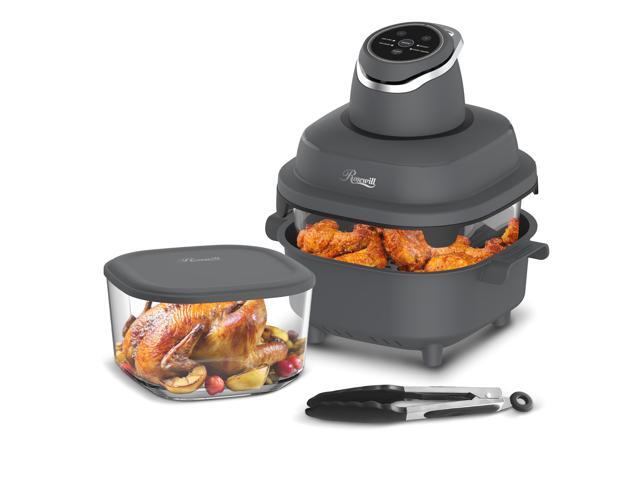 Rosewill 4-in-1 Portable Glass Air Fryer, 4.7QT Transparent Glass Cooking Pot with Storage Lid & Tongs, Compact Smart for Deep Roast, Recrisp, Keep Warm – Dark Grey