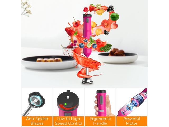 Rosewill 6-in-1 Multi-Speed Cordless Rechargeable Immersion Hand Blender,  Heavy Duty Motor - Stick Blender, Beaker, Whisk, Chopper, Dual Beater, Milk Frother - For Smoothies, Baby Food, Soup - Rose